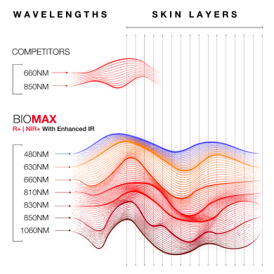 No other red light device available provides our multi-wave R+|NIR+ spectral output, harnessing six different red and near infrared wavelengths of lights for next level therapy.